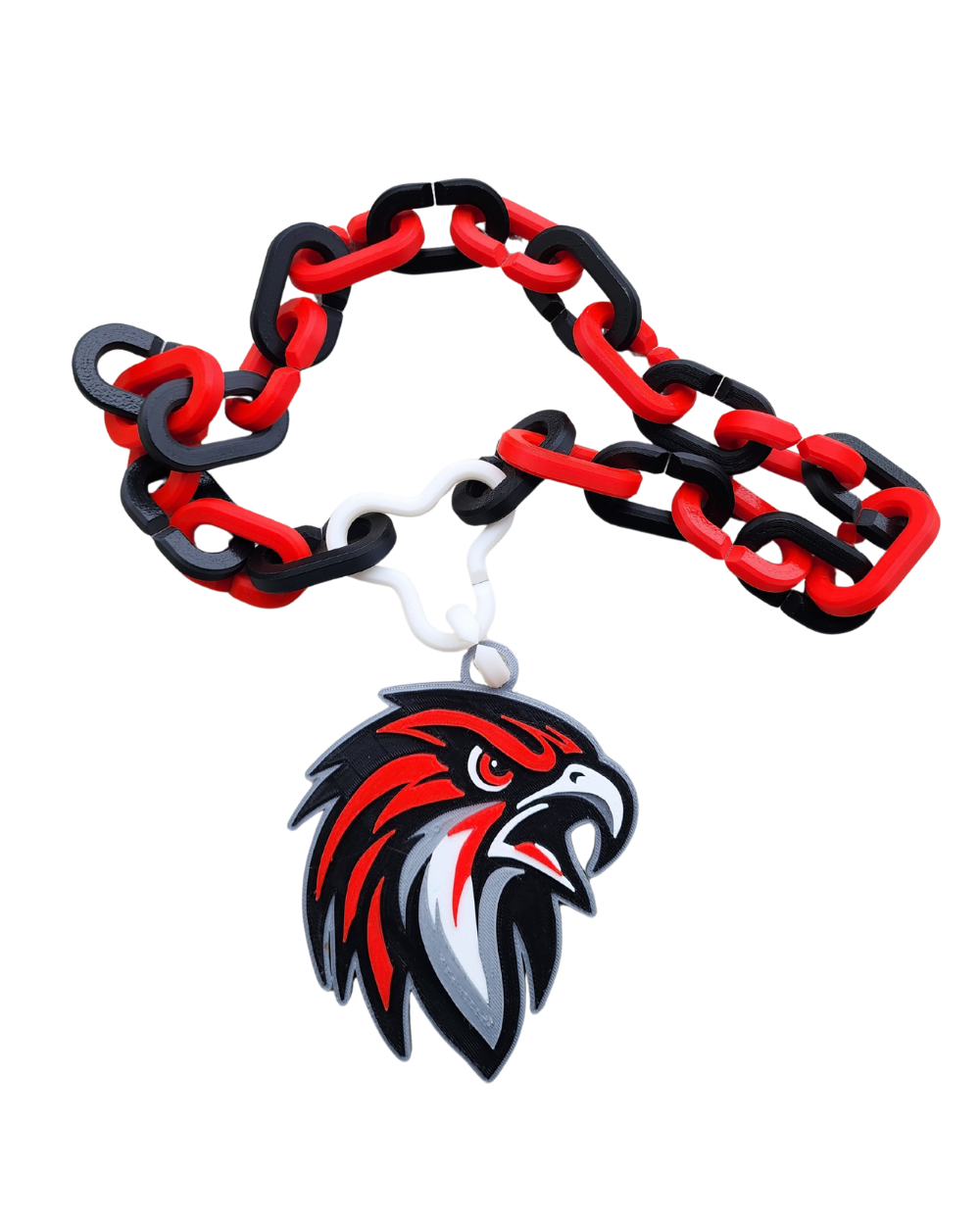 3D Printed Falcon head necklace with 3D printed chain. The Falcon head is double sided.